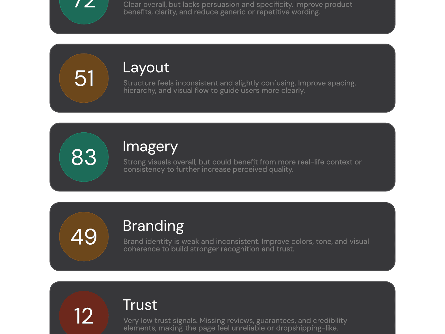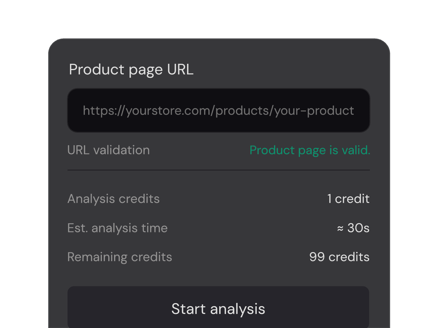 A simple and fast way to analyze your product pages and uncover what reduces trust and conversions.
