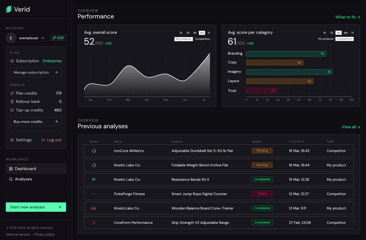 Join store owners using Verid to uncover trust issues, improve product pages, and increase conversions with clarity.